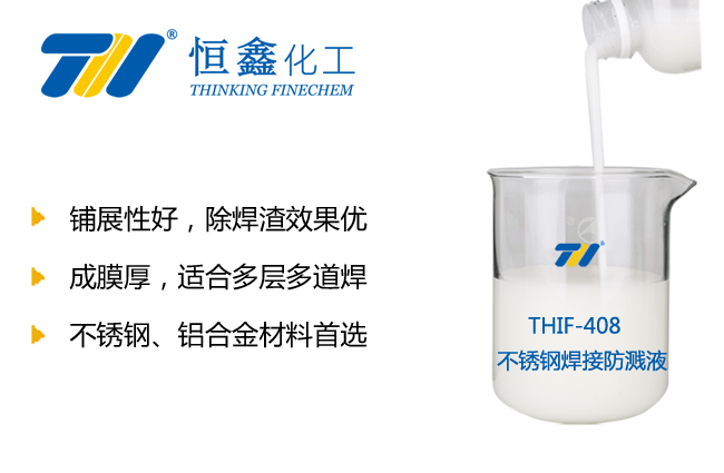 產(chǎn)品簡介THIF-408不銹鋼焊接防飛濺液是一種乳白色水基溶液,無腐蝕,不揮發(fā),無刺激味,對人體無害,對環(huán)境無污染,是一種新型環(huán)保焊接助劑。噴涂在焊件表面形成一層膜,膜薄無漏點(diǎn),鋪展性特別好,隔離了焊渣與焊接材料的粘連,除渣操作簡單徹底,同時(shí)改善焊件外觀質(zhì)量,保持焊件表面光潔。技術(shù)指標(biāo)